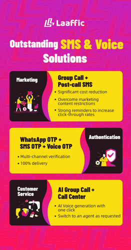 Laaffic, a global leader in SMS and traffic solutions headquartered in Singapore, offers products and services including AI Traffic, SMS, Voice, and WhatsApp OTP.